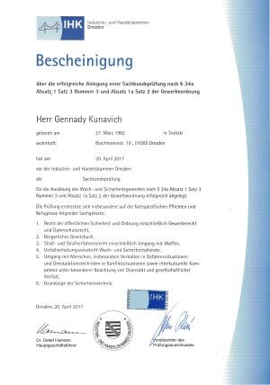 Die Themen Schutz und Sicherheit können sehr facettenreich sein. Aus diesem Grund ist unser Angebot auch auf den individuellen Bedarf unserer Kunden zugeschnitten. Als Sicherheitsunternehmen sind wir gemäß 34a GewO für das Bewachungsgewerbe staatlich zertifiziert.